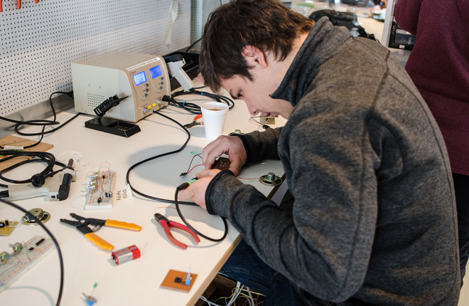 Con éxito finalizó el workshop Diseño, Interacción y Sonido organizado por la mención de Diseño de Interacción Digital y la dirección de Extensión de la Facultad de Diseño, y llevado a cabo por los profesores Renzo Filinich y Pablo Guerra. En este taller teórico práctico los alumnos pudieron: recorrer desde los fundamentos básicos de la electrónica aplicada a la generación de sonido análogico, conceptos base de diseño de interacción, aprender a crear sus propias placas PCB, prototipar con herramientas de electrónica, sensores y fabricación digital. A lo largo del workshop fueron integrando estos conocimientos para crear su propio artefacto modulador de sonido capaz de reaccionar a distintas acciones del usuario, con perillas, botones o sensores y generar sonidos.