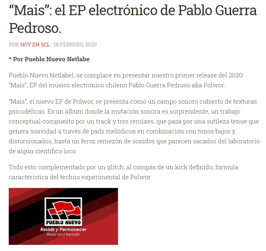 Link: http://www.hoyensantiago.cl/2020/02/18/mais-ep-electronico-pablo-guerra-pedroso/