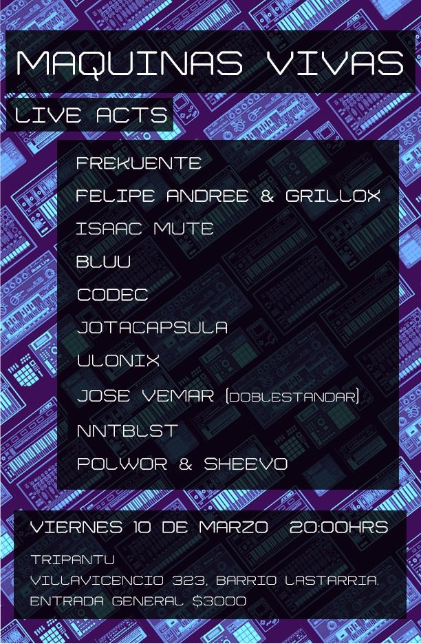 Presentación junto a mi gran amigo Diego Mendez A.K.A SHEEVO en MÁQUINAS VIVAS// Muchas gracias a Jose Vemar y Felipe Sobarso por la invitación!