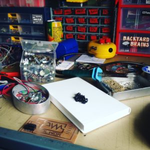 / Potenciometro 500k / Condensador electrolítico 0.33uf / LED / Minijack 3.5