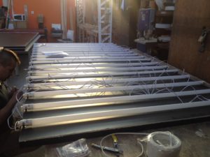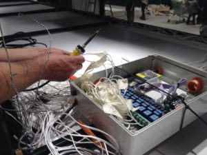 El encargo consistía en agrupar, instalar, cablear, soldar y montar, cerca de 250 tubos en 8 paneles. Estos crearían la pasarela para el lanzamiento de la colección del diseñador de modas Karl Lagerfeld en Falabella.