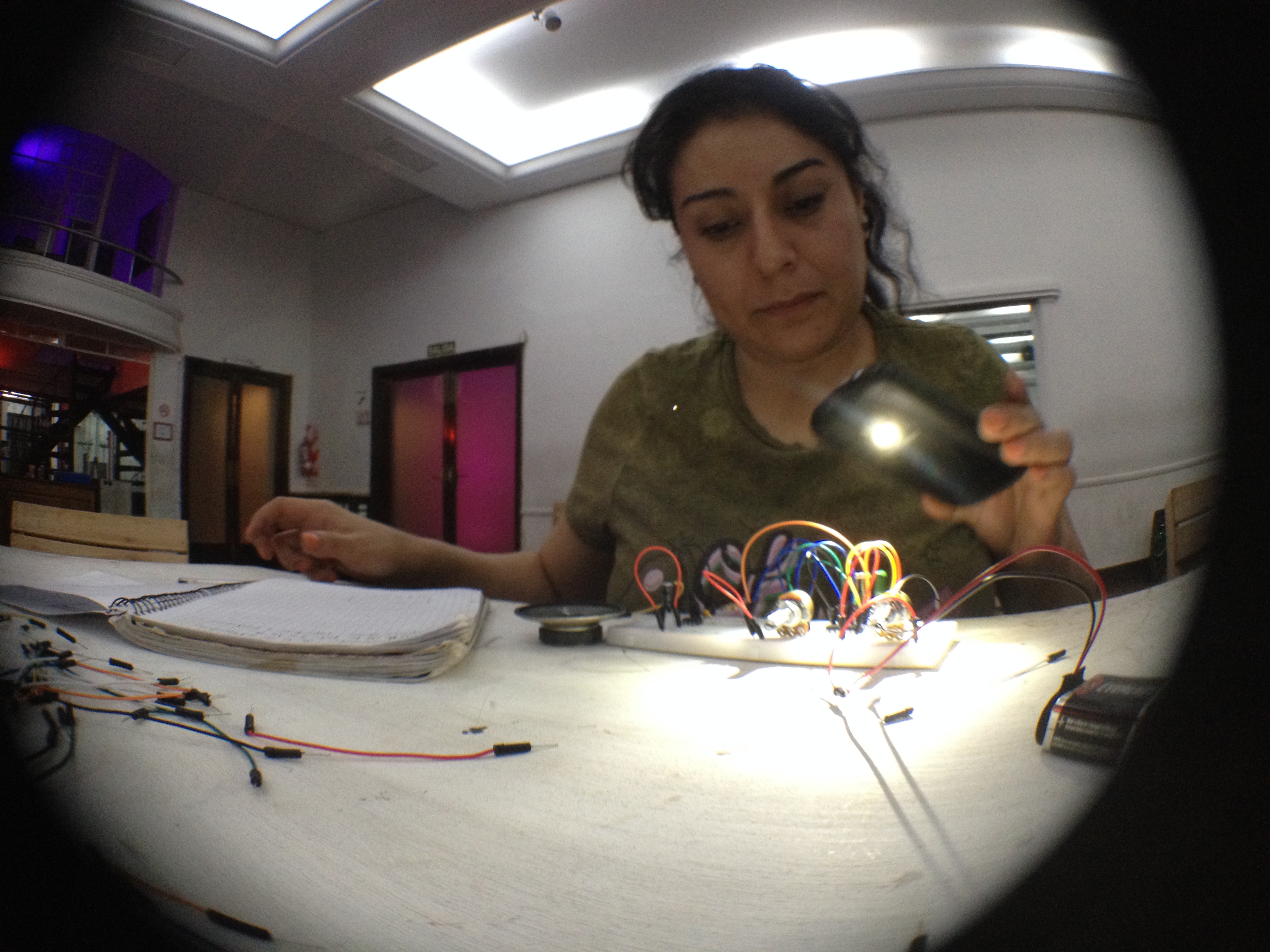 Muchas gracias a David y Xin quienes pusieron todo de su parte y sacamos adelante el taller Sintetizador Experimental.