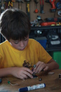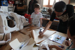 El objetivo del taller es desarrollar el pensamiento creativo, echar a volar la imaginación y la fantasía a través de diversas técnicas y oficios. Tales como trabajo el en yeso, nociones básicas de electrónica, diseño y reciclaje.