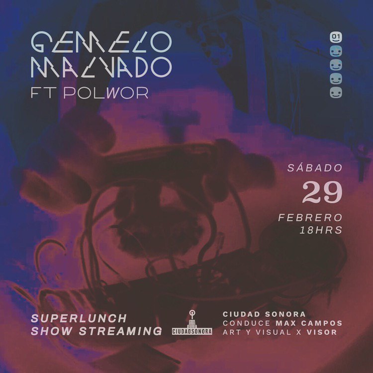 Presentamos la nueva mini serie basada en presentaciones en vivo sobre el sonido electrónico del dúo nacional Gemelo Malvado (Escobar Gallardo + Pululosz) junto a invitados donde mixturan y entrelazan ideas asociadas al desarrollo en conjunto. En esta oportunidad presentamos al primer invitado, Músico y diseñador industrial POLWOR con ya varios años transitando el camino de la experimentación electrónica, es además gestor de los recordados ciclos experimentales en casa de los X – Café Con Cables.