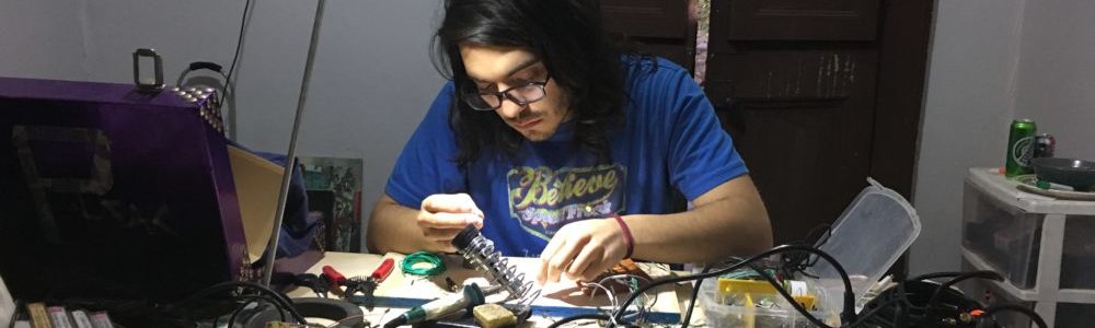 Realizamos dos clases, una teórica: estableciendo marco teórico para su tesis, referentes y bibliografía, también revisamos como hacer planos esquemáticos de circuitos…… la otra clase practica donde soldamos los componentes a una placa pre-perforada para que luego Martín pudiese adecuarlo a su diseño.